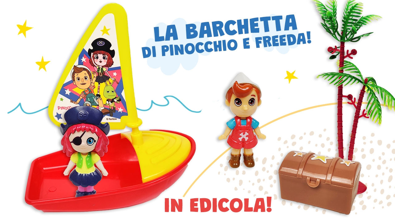 questo mese in edicola trovate la barchetta di Pinocchio e Freeda con gli accessori per giocare e inventare tante fantastiche storie su isole sperdute alla ricerca di magici tesori. Il set include 2 personaggi, una palma, un forziere pieno di tesori e la barchetta, la vela si muove davvero.